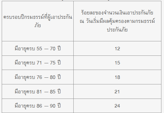 ถ้าผู้เอาประกันภัยมีชีวิตอยู่จนถึงวันครบรอบปีกรมธรรม์ที่ผู้เอาประกันภัยครบอายุ 55 ปี