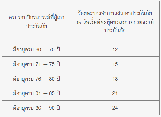 ถ้าผู้เอาประกันภัยมีชีวิตอยู่จนถึงวันครบรอบปีกรมธรรม์ที่ผู้เอาประกันภัยครบอายุ 60 ปีบริษัทจะจ่ายเงินบำนาญทุกวันครบรอบปีกรมธรรม์ โดยเริ่มจ่ายเงินบำนาญตั้งแต่วันครบรอบปีกรมธรรม์ที่ผู้เอาประกันภัยครบอายุ 60 ปี เป็นต้นไป ตราบเท่าที่ผู้เอาประกันภัยมีชีวิตอยู่ แต่ไม่เกินวันครบรอบปีกรมธรรม์ที่ผู้เอาประกันภัยครบอายุ 90 ปี ในอัตราร้อยละของจำนวนเงินเอาประกันภัย ณ วันเริ่มมีผลคุ้มครองตามกรมธรรม์ประกันภัยตามช่วงระยะเวลาที่ผู้เอาประกันภัยมีชีวิตอยู่ดังนี้