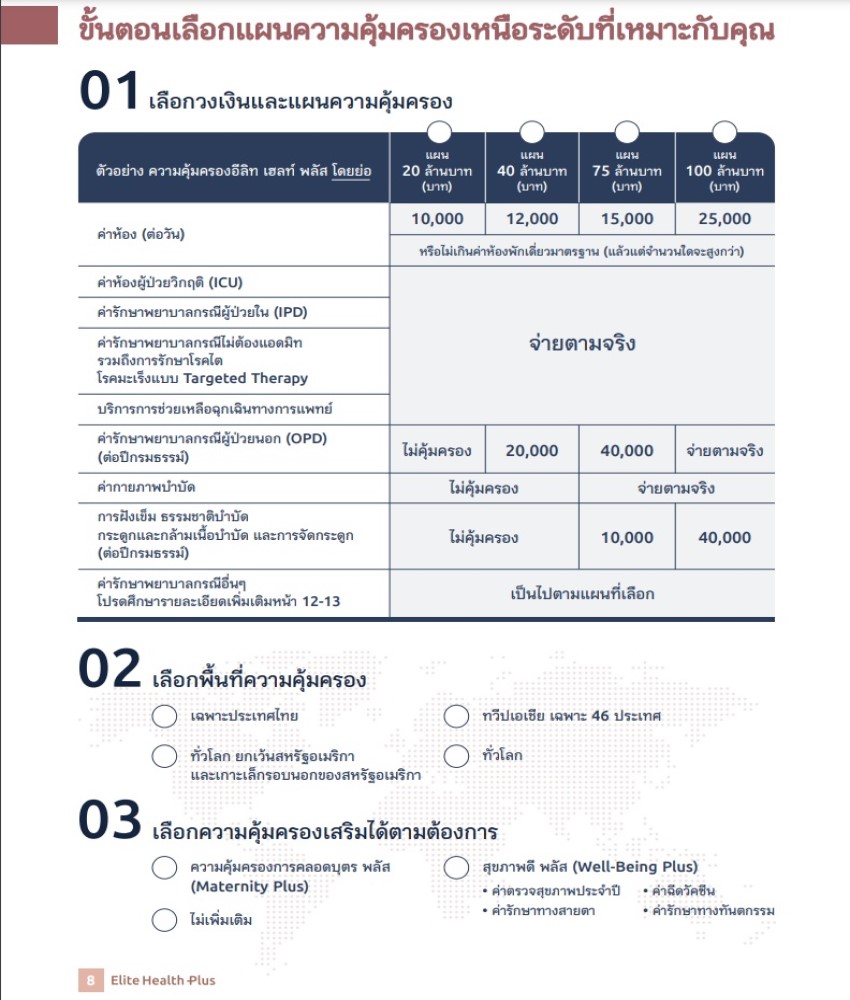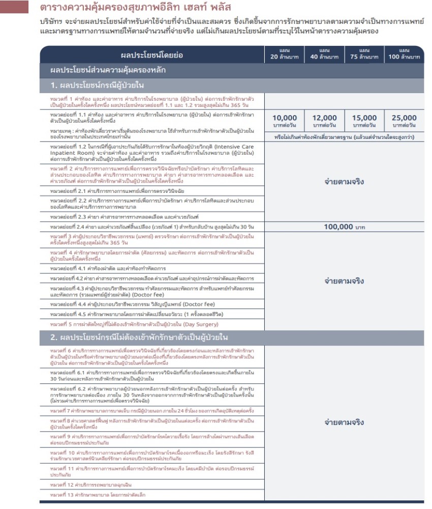 ตัวอย่าง เบี้ย Elite Health Plus ประเทศไทย