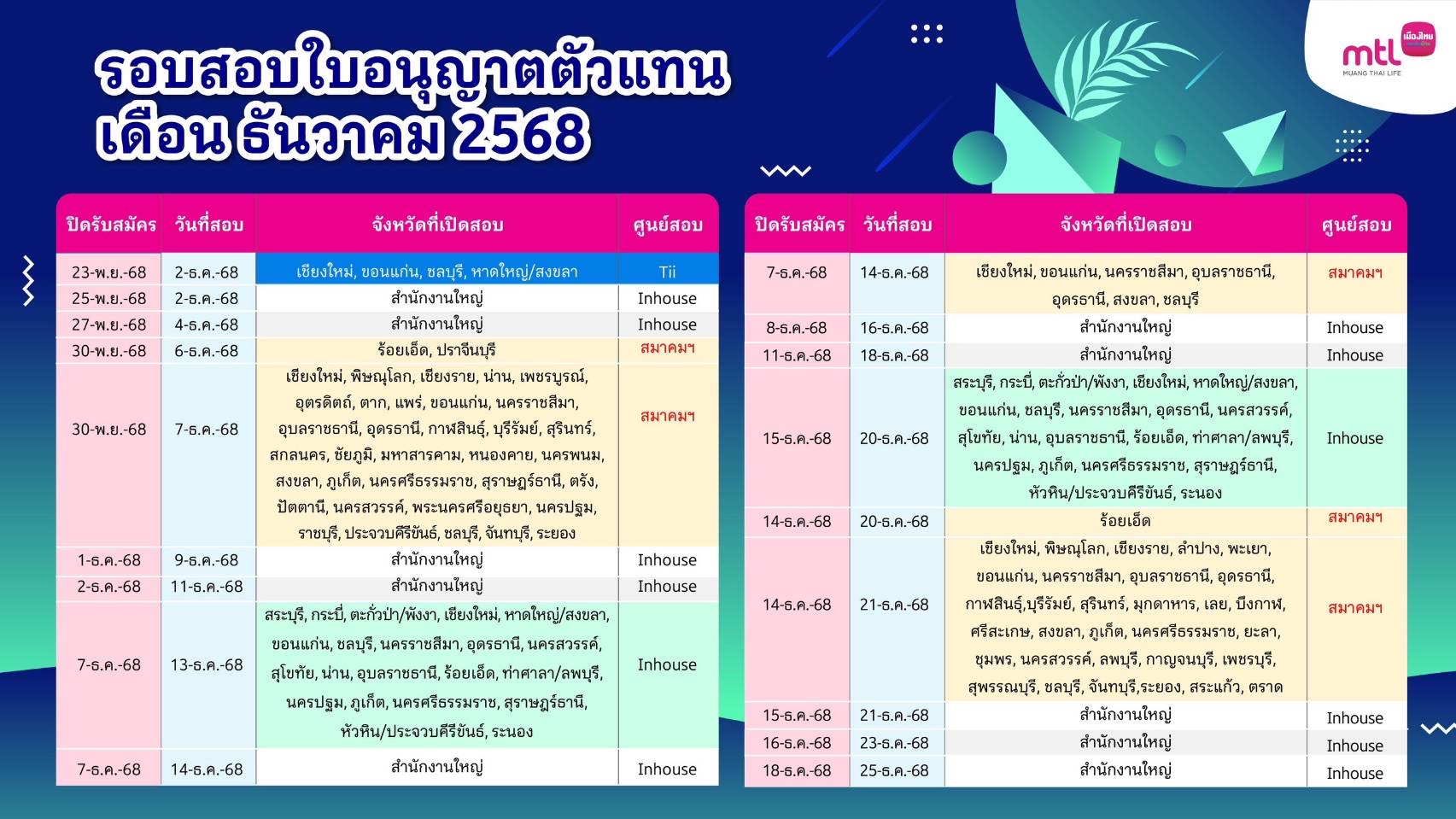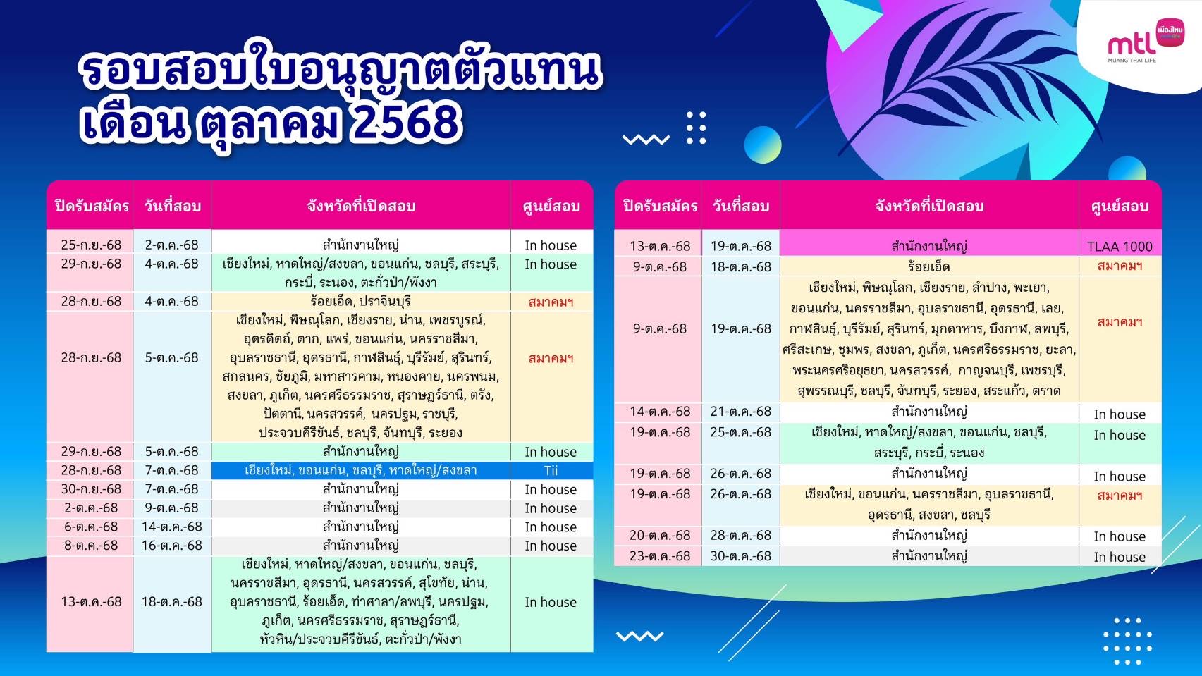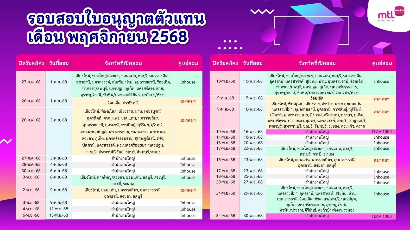 ตารางสอบตัวแทนประกันชีวิต Q3 2568