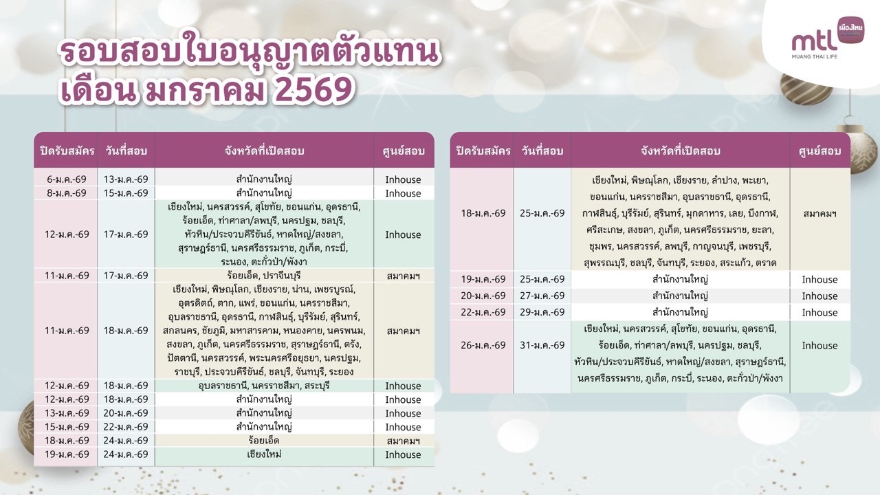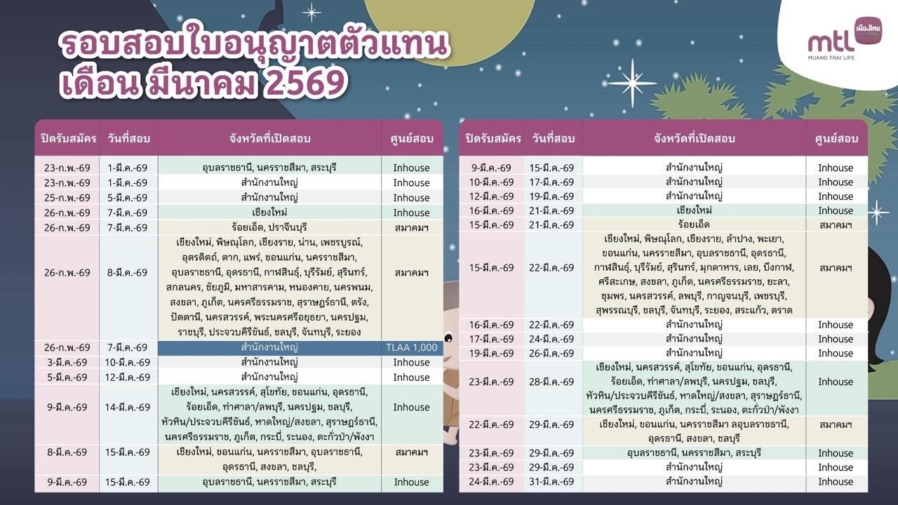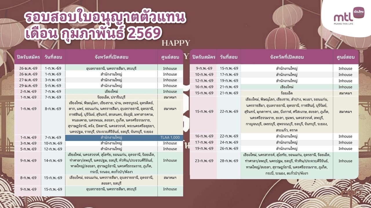 ตารางสอบตัวแทนประกันชีวิต Q3 2568